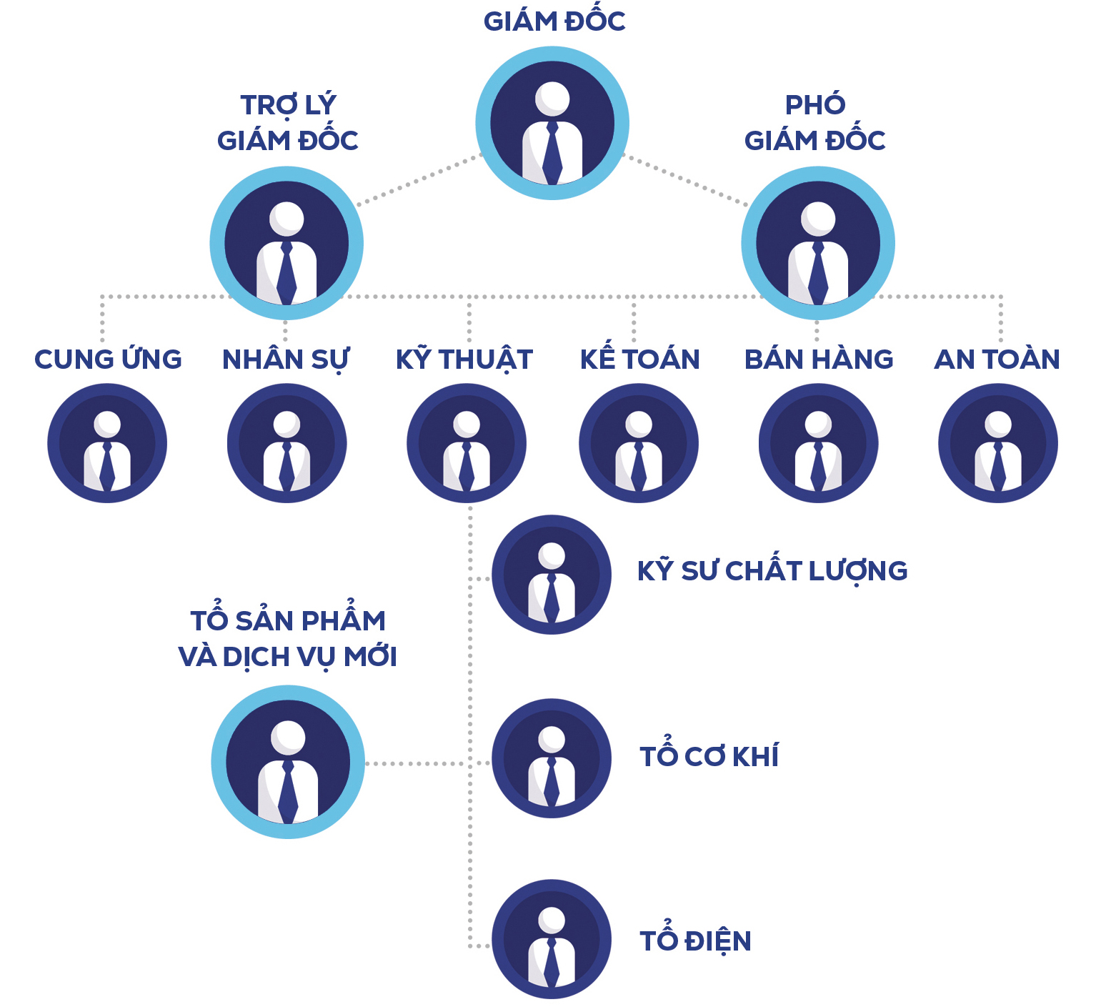 Cơ cấu tổ chức rõ ràng, chuyên môn hóa theo từng bộ phận, đảm bảo triển khai dự án hiêu quả và đồng bộ.